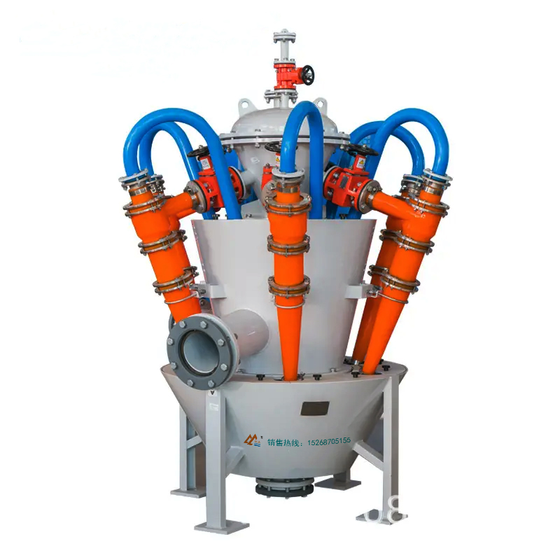 旋流器內(nèi)部是一個(gè)圓錐形的腔體。待分離的混合物以一定的壓力和速度沿切線方向進(jìn)入旋流器。在旋流器內(nèi),混合物會(huì)形成高速旋轉(zhuǎn)的渦流。由于離心力的作用,較重或較大顆粒的物料受到較大的離心力,被甩向旋流器的壁面,并在重力作用下向下運(yùn)動(dòng),從底流口排出;而較輕或較小顆粒的物料受到的離心力較小,集中在旋流器的中心部位,形成上升的內(nèi)旋流,最終從溢流口排出。